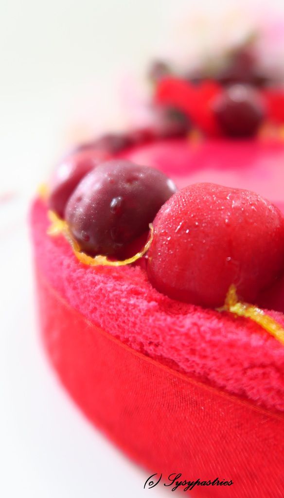 Bon, si on parlait des goûts. Il s'agit d'un entremet au citron avec un confit de griottes. Très bon mariage. J'ai même recommencé pour peaufiner... mais le goûteur maison ... qui est critique... a beaucouppp aimé...