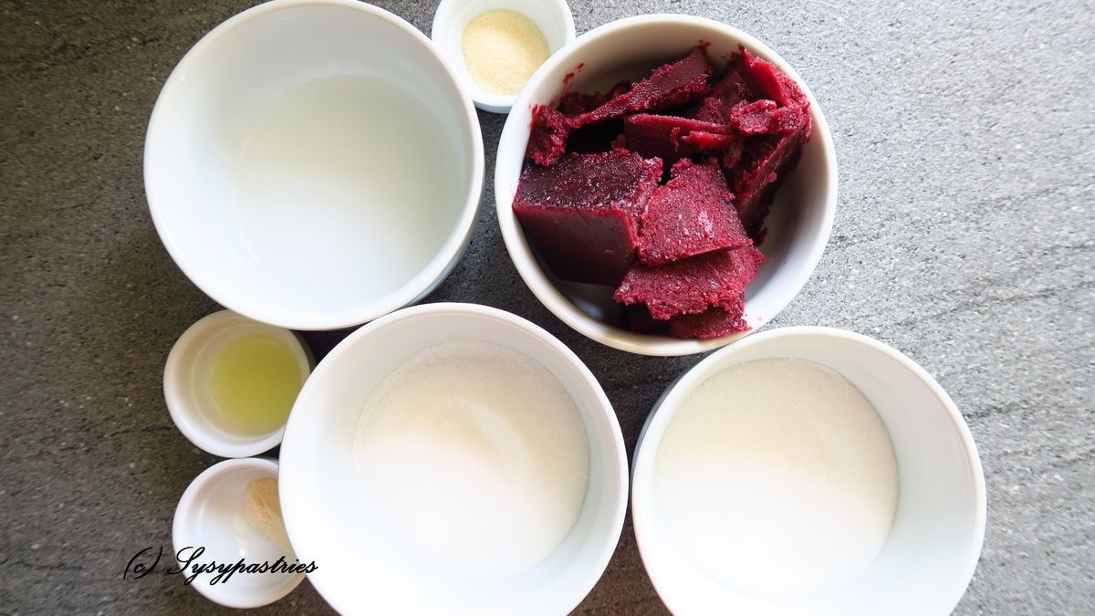 Au niveau des quantités, il y a tout juste ce qu'il faut. Vous n'aurez pas de rab en mousse et en confit de griottes. Pour le biscuit, vous pourrez faire 4 ou 5 biscuits à côté