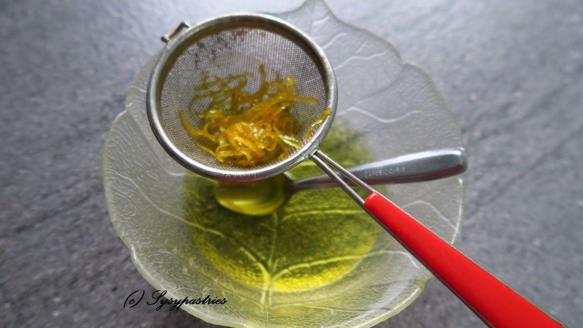 Dans une petite casserole, portez le jus de citron à ébullition et ajoutez la gélatine essorée et ramollie. Mélangez