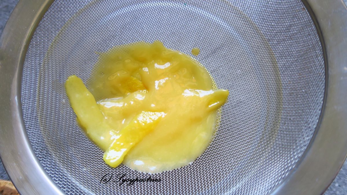 Filtrez le lemon curd au travers de la passoire... attention ça ne passe pas très bien, c'est normal...