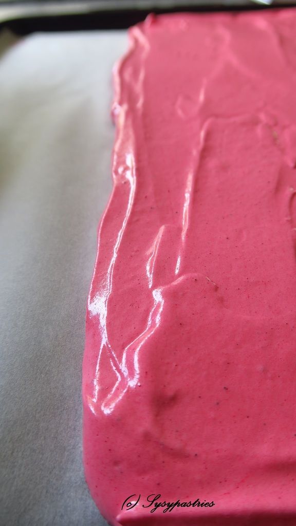 Versez de la préparation sur une plaque munie d'un papier sulfurisé.... je n'ai pas trop étalée car je voulais un peu d'épaisseur